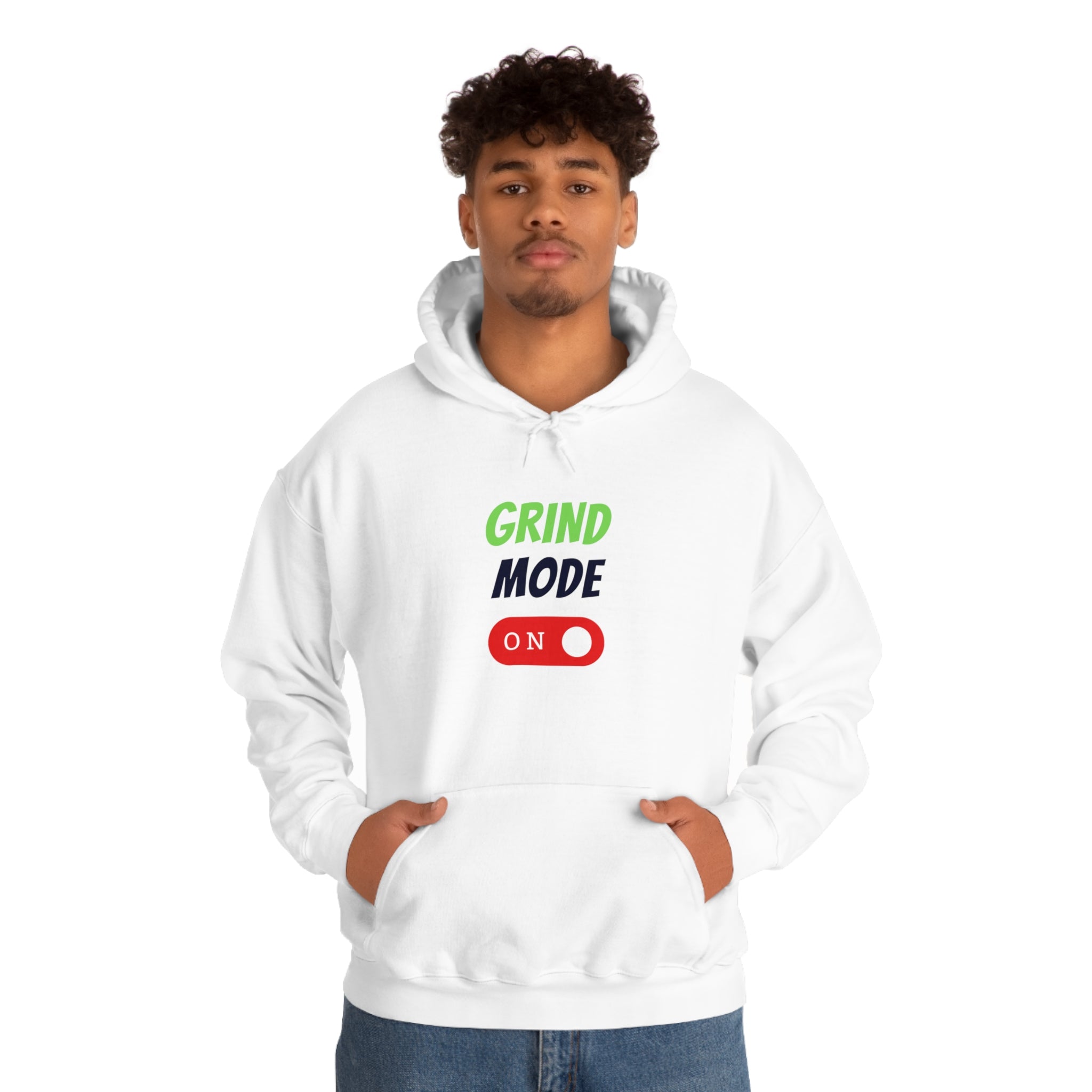 This unisex heavy blend hooded sweatshirt is relaxation itself while your in Grind Mode. Made with a thick blend of cotton and polyester, it feels plush, soft and warm, a perfect choice for any cold day. In the front, the spacious kangaroo pocket adds daily practicality while the hood's drawstring is the same color as the base sweater for extra style points.